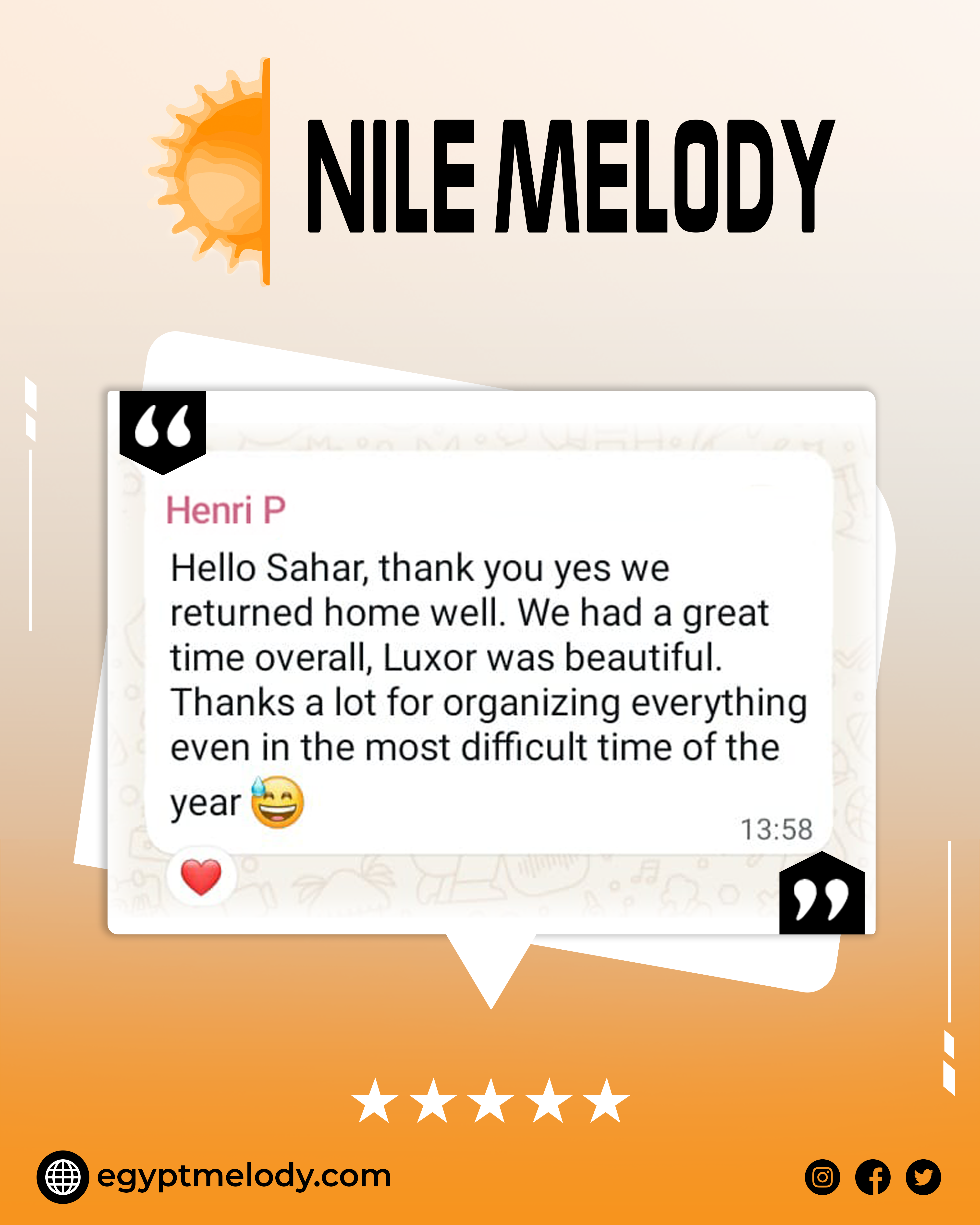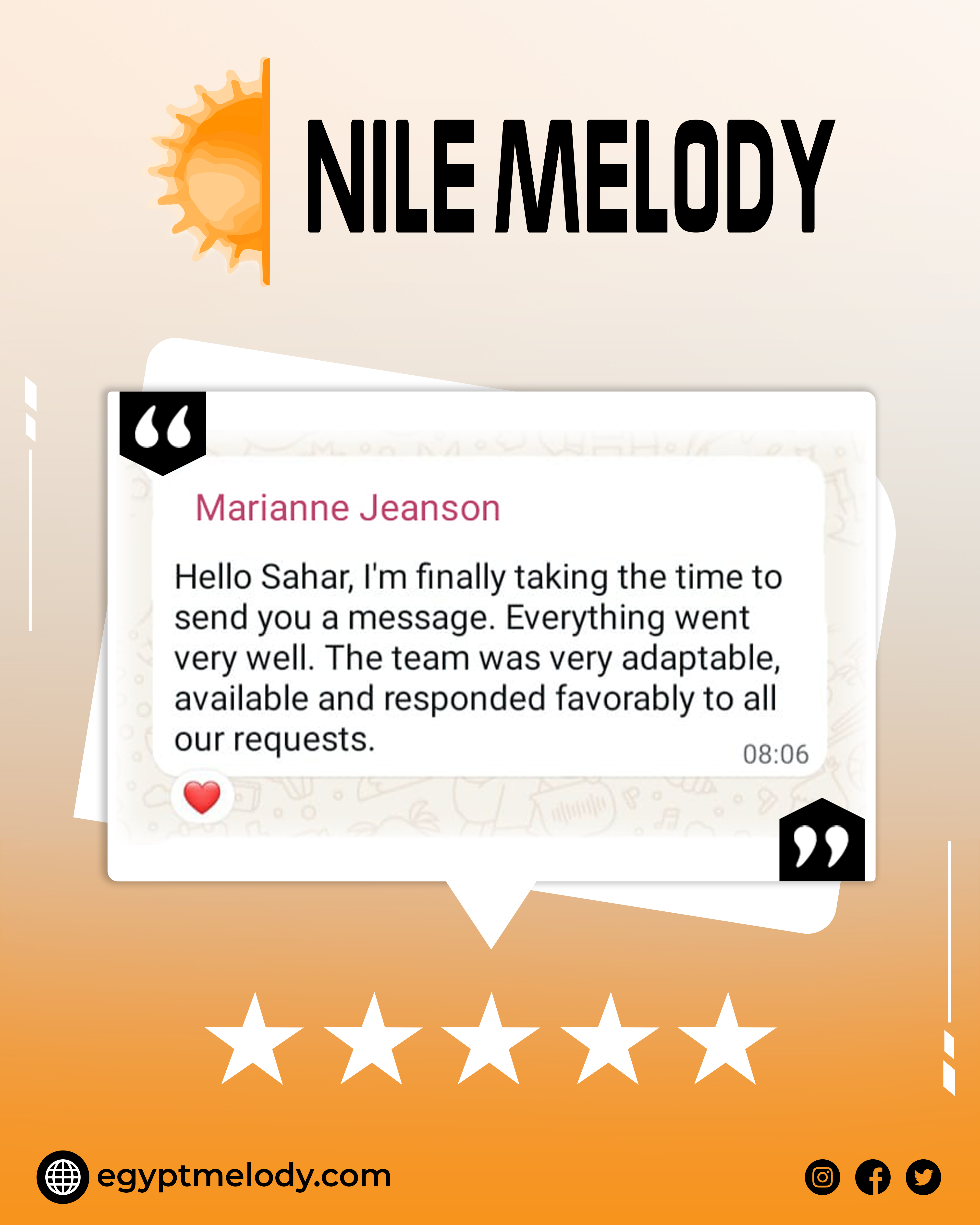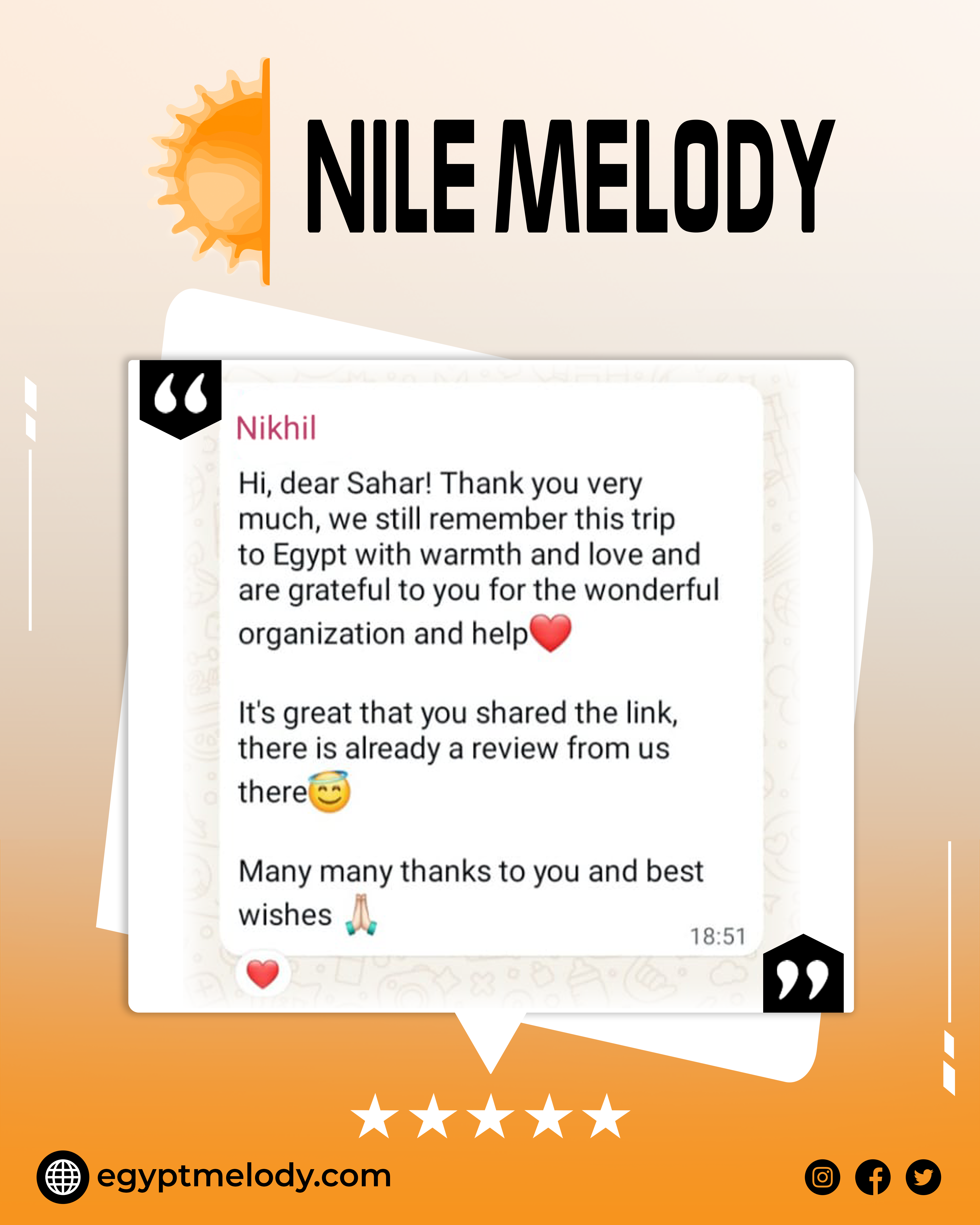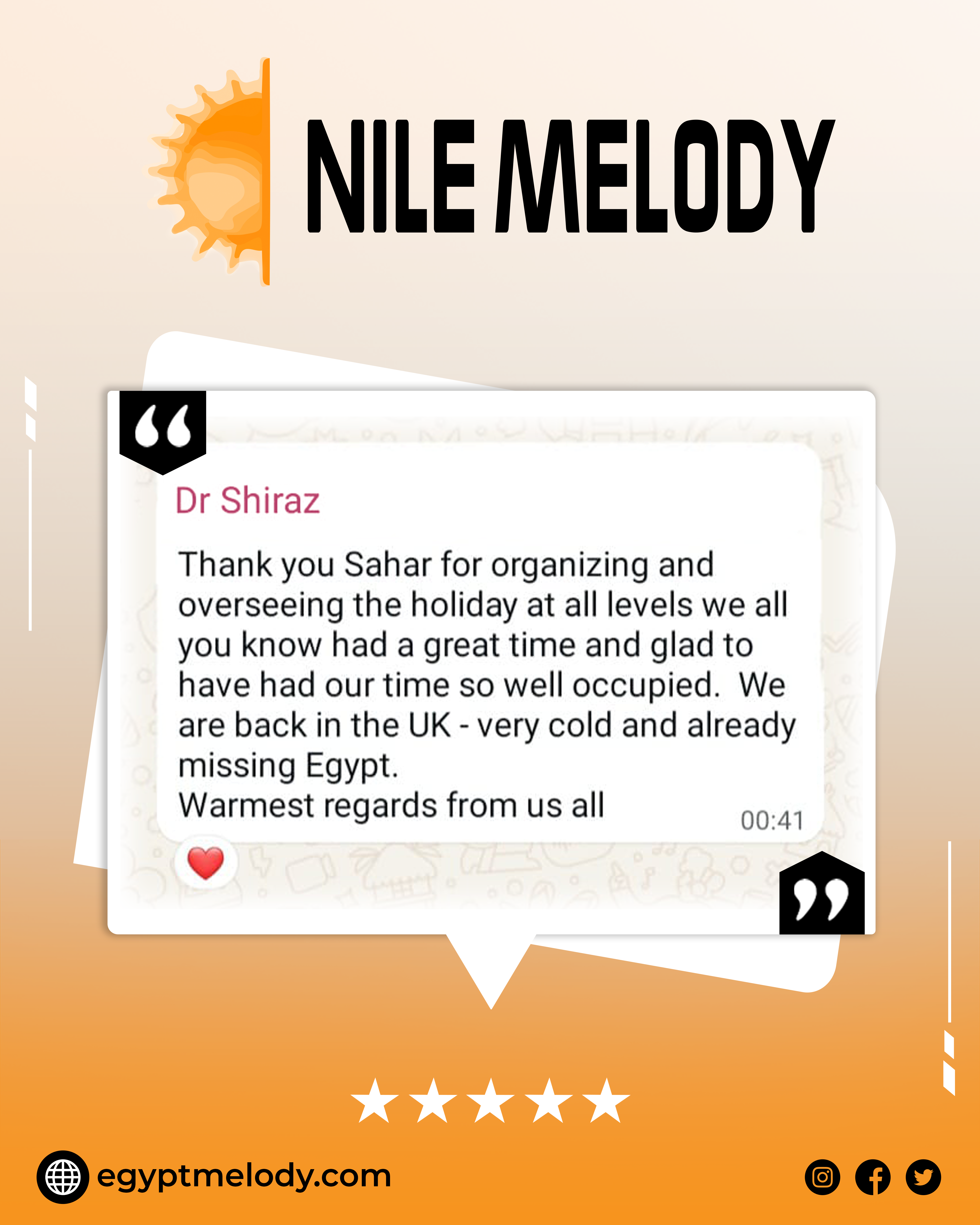 Stay up-to-date with all the latest news, exclusive offers, and exciting travel packages from Nile Melody by subscribing to our newsletter. Whether you're planning your next vacation or just dreaming about future adventures, our newsletter delivers inspiration and insider tips directly to your inbox. Be the first to know about special promotions, travel deals, and new tour options designed to make your Egyptian getaway unforgettable. Sign up today and never miss a chance to explore Egypt with Nile Melody!